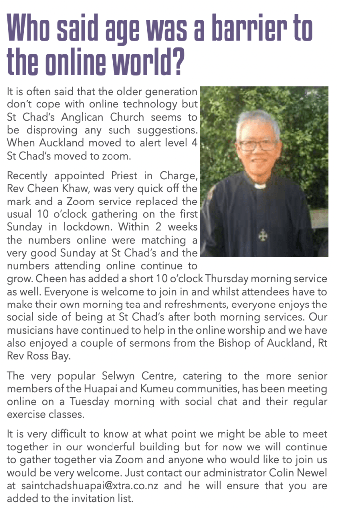 The choir have not put a price on the tickets but a koha would be appreciated and this can be in cash on the night or by online banking to Pohutukawa Singers 12-3030-0591263-00. As you can imagine life in the arts has been difficult in 2021! In July the choir ordered new carol books at about $55 each in anticipation of 2 well attended Christmas concerts and although some costs reduced in lockdown they continued to pay their musical director for all his work on Zoom rehearsals, so any donations would be very gratefully received.